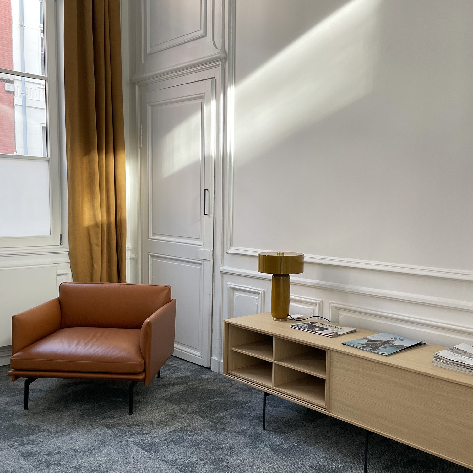 Accompagnement de la réhabilitation d’un immeuble historique du vieux Lille. Amener de la modernité et du design dans des espaces de travail par un choix de mobilier contemporain, fonctionnel et chaleureux destiné à divers usages.