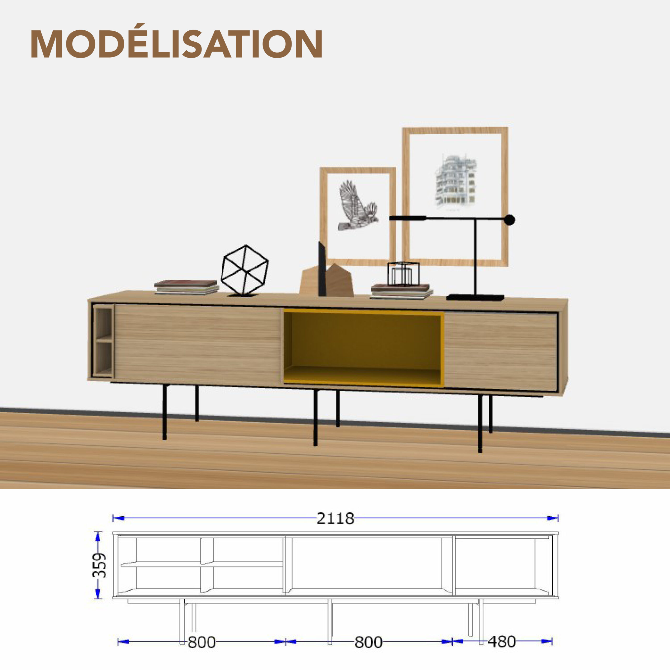 Vous imaginez ensemble l’implantation et l’acquisition de nouveaux meubles, luminaires et accessoires de décoration pour aménager votre cadre de vie.