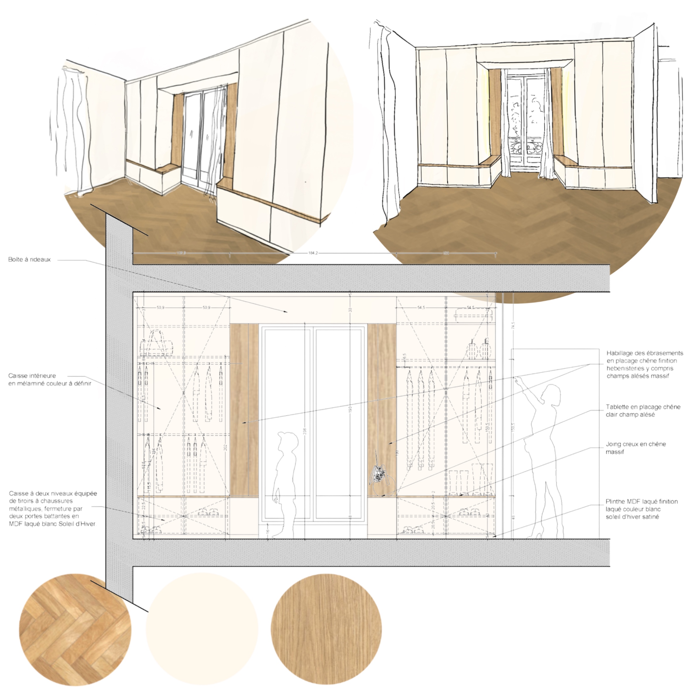 L’esquisse réalisée vous aide à vous projeter et s’accompagne d’une recherche de textures, matières, couleurs et éclairages, mobilier et accessoires. Elle mesure le périmètre d’intervention et l’enveloppe de travaux.