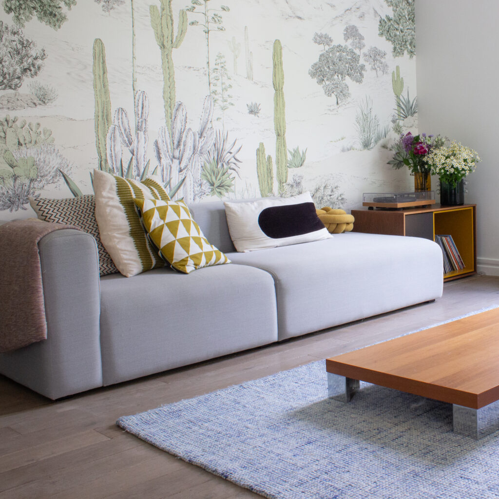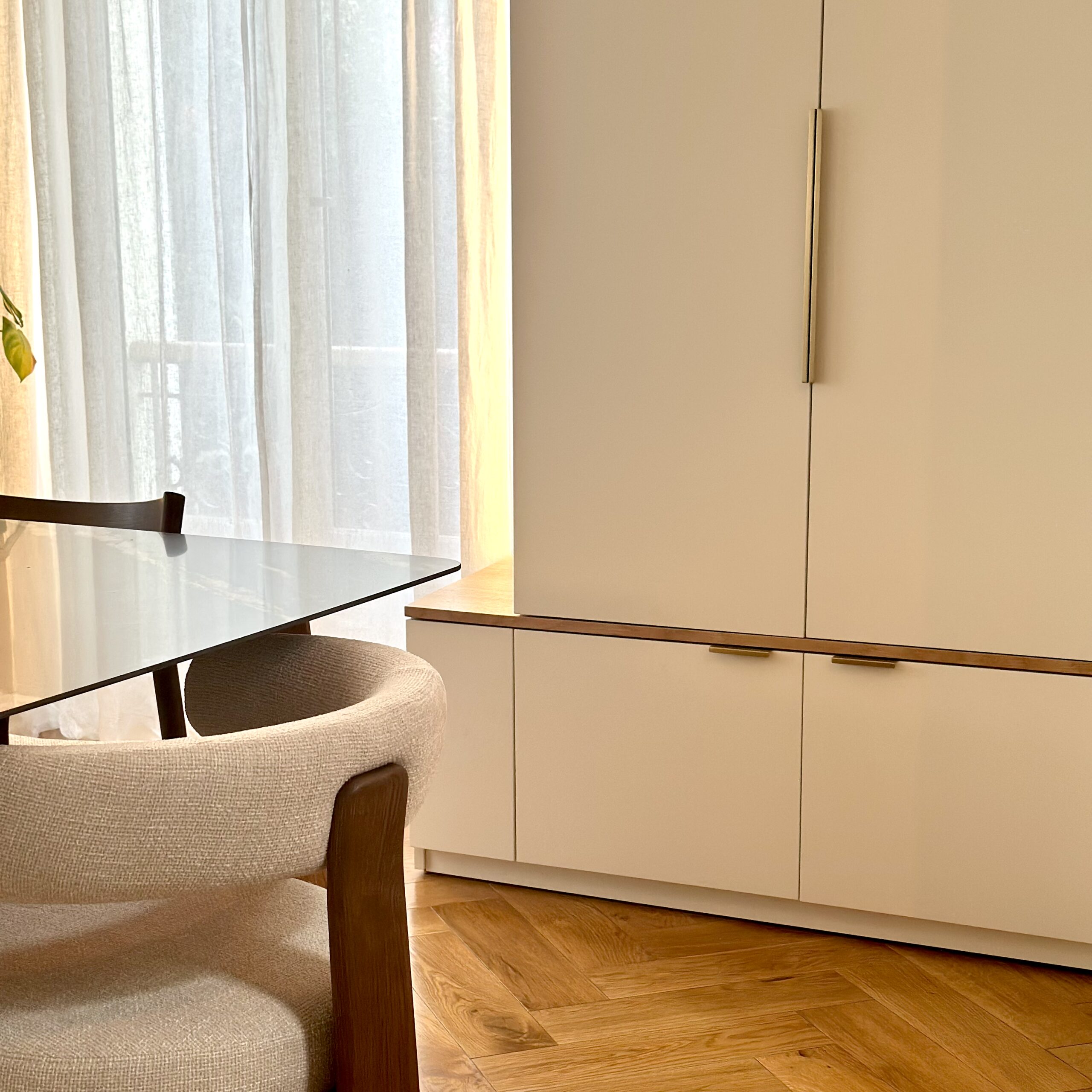 Aménagement et décoration d’un T2, avec une attention particulière portée à l’entrée, au séjour et à la chambre, en harmonie avec l’existant. Le projet repose sur une sélection de mobilier sur mesure et d’éléments décoratifs soigneusement choisis, pensés pour structurer les espaces et révéler leur identité.