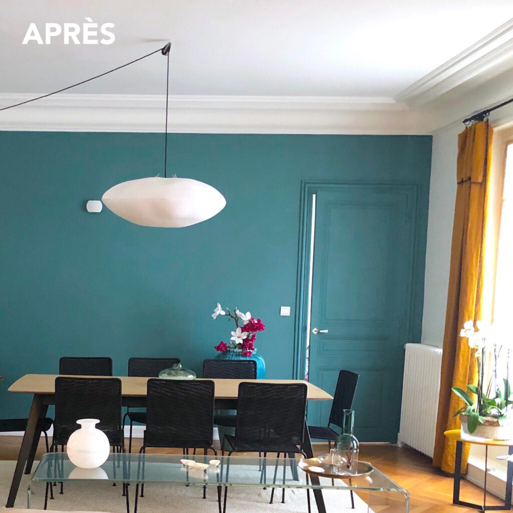Les touches de couleur, en accord avec les goûts de la cliente, insufflent modernité et caractère à l’ensemble.