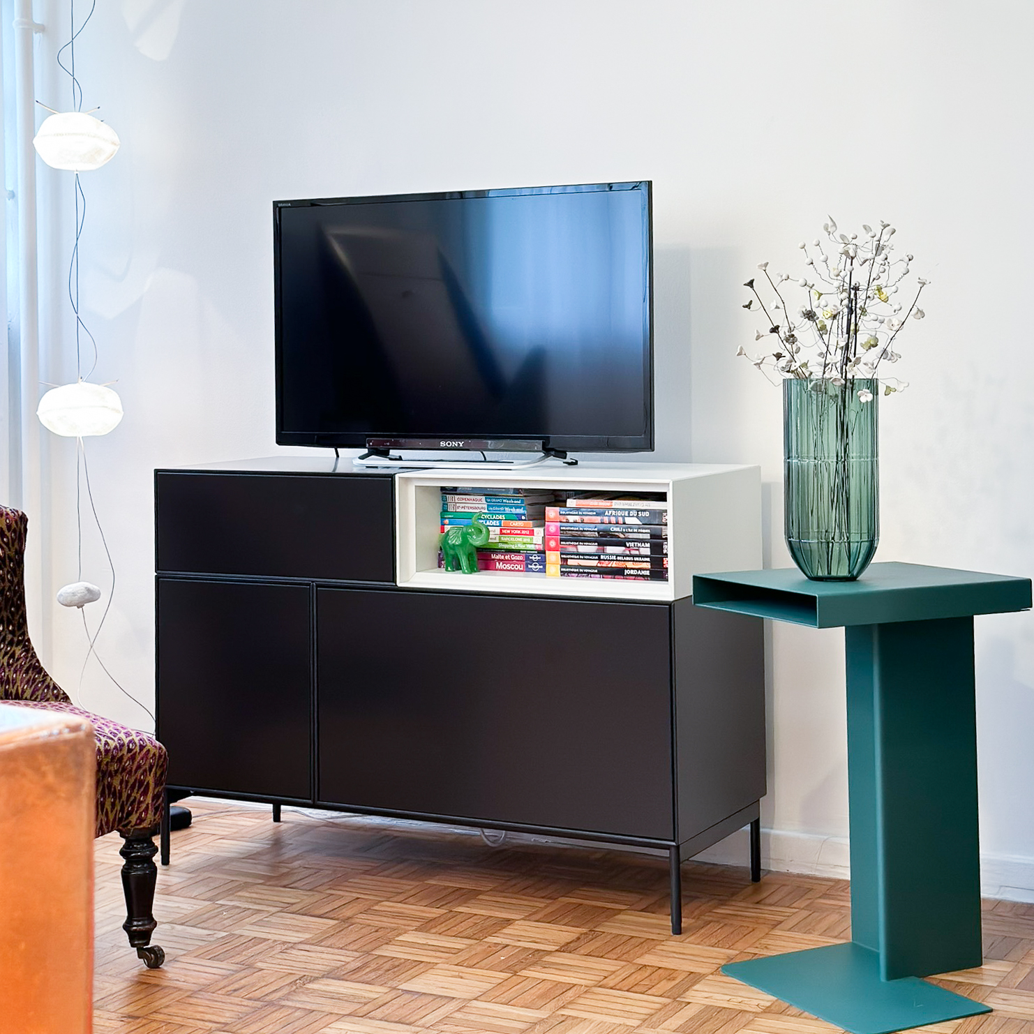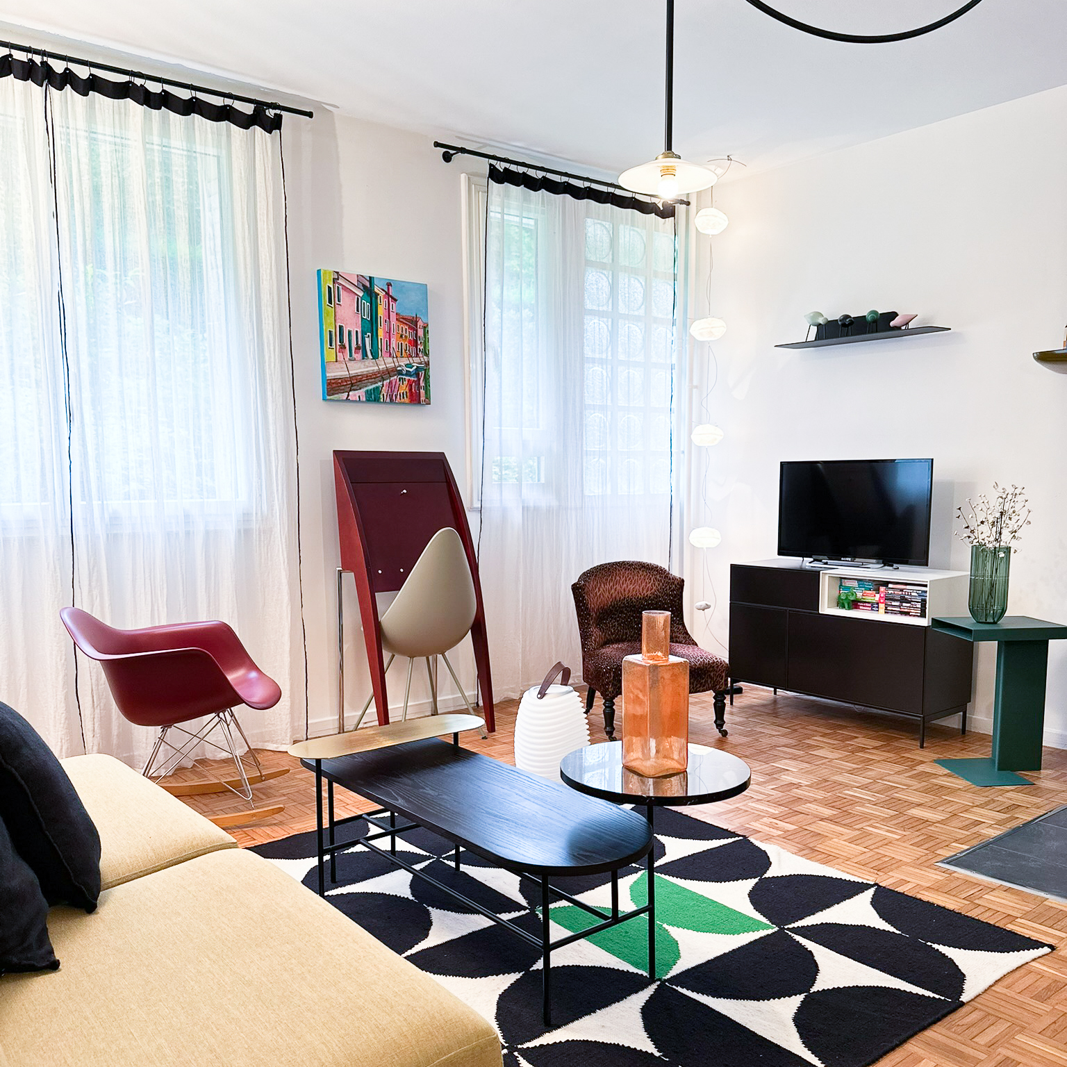 Redonner un nouveau souffle à un appartement du centre-ville de Nogent s/marne à forte personnalité tout en respectant l’esprit du lieu. Amener modernité et design par une sélection de mobiliers et luminaires s’harmonisant à une très belle collection d’articles de décoration issus de l’artisanat d’art.